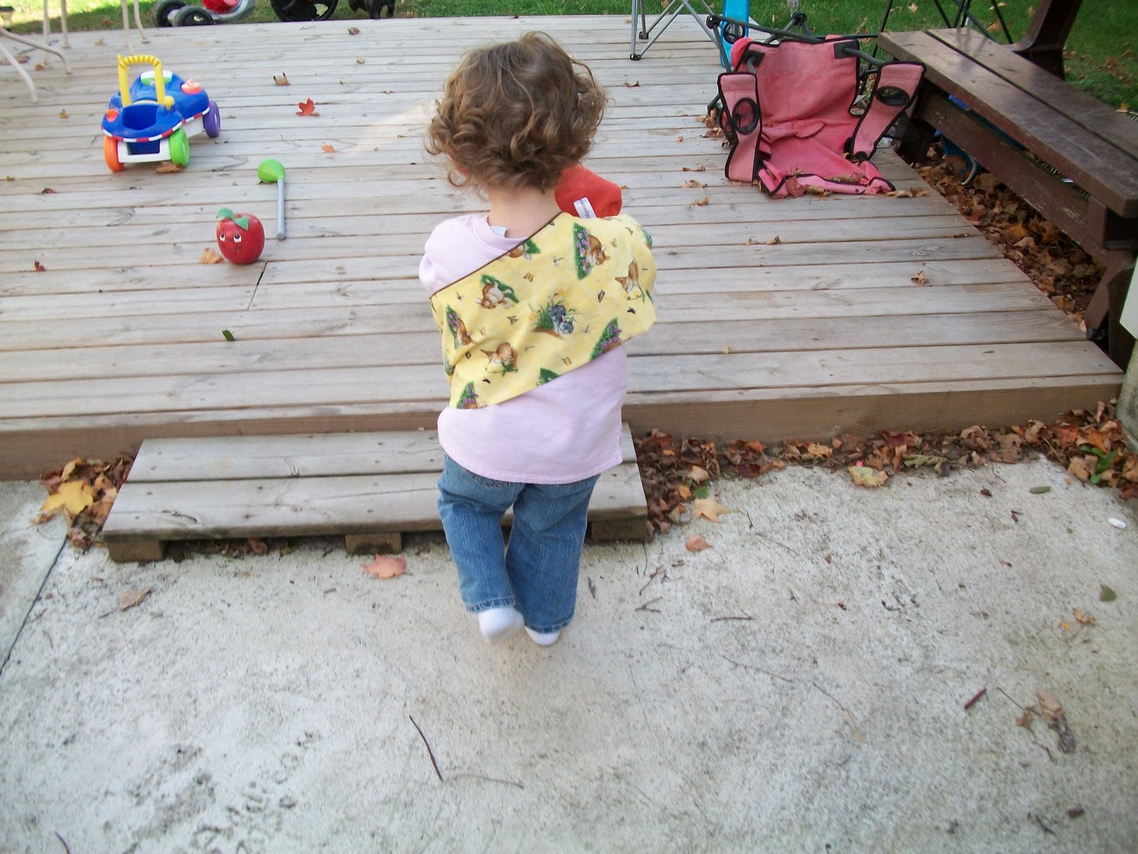 We had been at D's house for about an hour and everyone was on the porch including the dog and A was jumping around.
